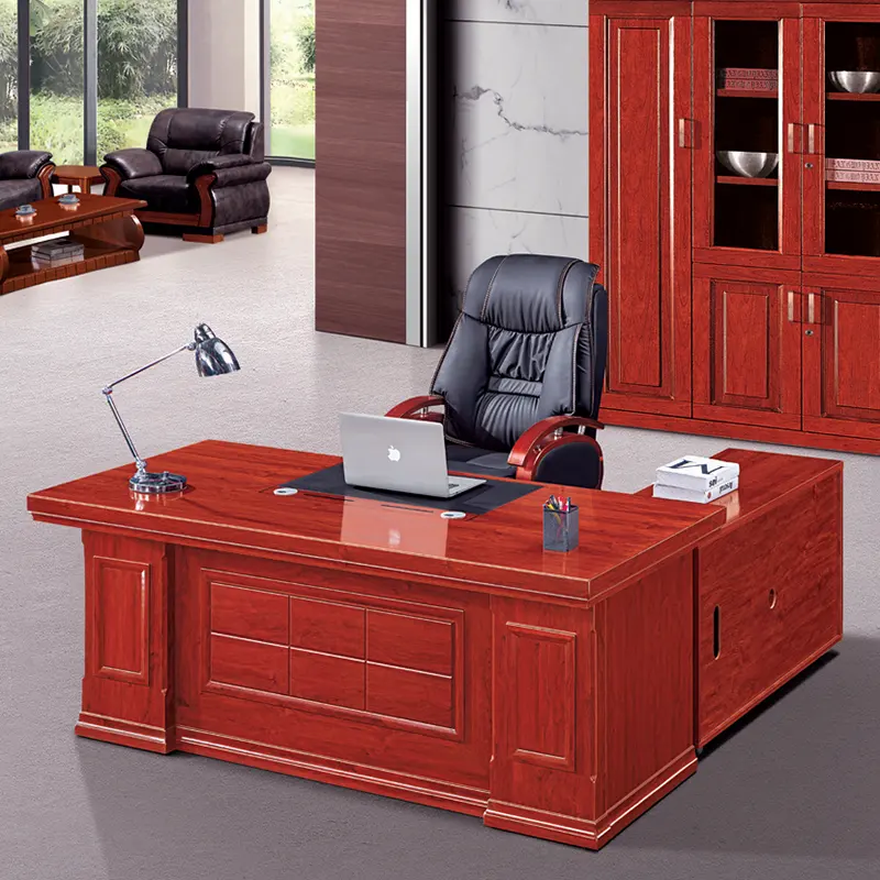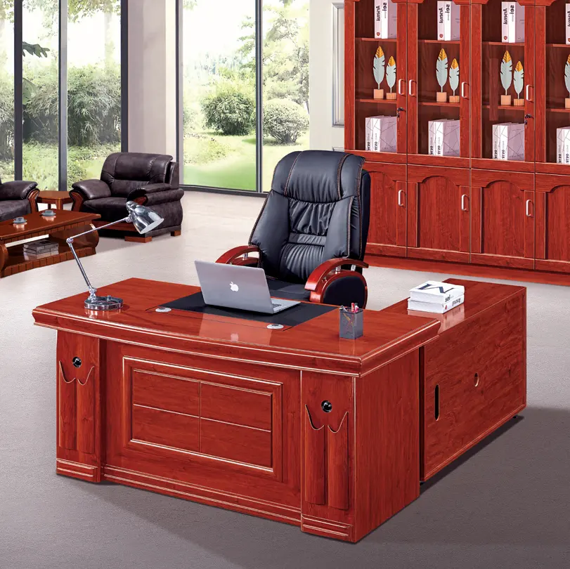 This Modern new style executive office table is made of melamine laminated particle board or MDF with veneer and painting, have the character of anti water. anti dirt, anti scratch. Outfit your entire office with the complete Executive Office desk size: 2000x2000x780 with desktop thickness of 70mm. It is elegantly designed to ensure optimal strength and years of durability. This affordable, ready to assemble set comes with a double pedestal bow front desk, a double pedestal credenza and hutch, a lateral file . This set look fabulous for any professional setting. CEO executive black leather high back chair modern office furniture desk office chair .Product Size:500x650x1000-1200, Back made of high quality leather + Black leather Frame .Made of high quality material, multipurpose, movable and provides the needed comfort. The table is sturdy and stable. The three drawers provide enough space for organizing all the necessary office supplies in the home or professional office and also at a very affordable price. Product requires assembling. Efficient wooden office table made of the best kind of durable wood, long lasting wood that does not decay. Fits perfectly to office setting. Application: Office , Home, School , Hospital, Hotel, Bank, Airport.