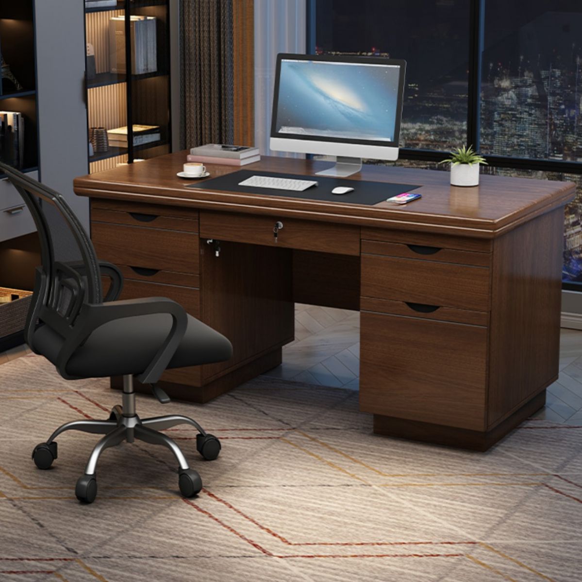 Imported executive office tables with lockable drawers.