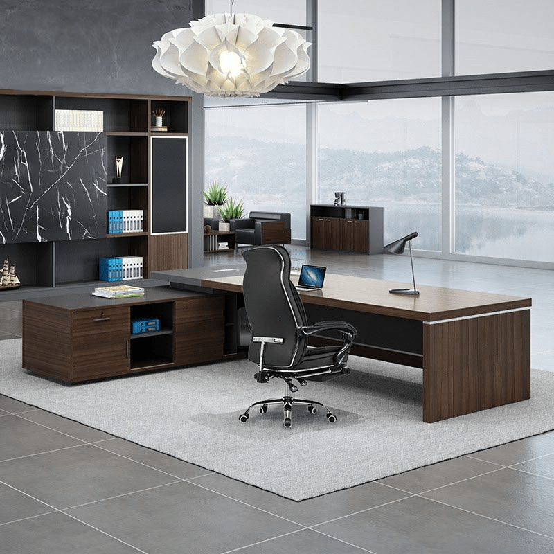 Crafted from high-quality materials, this executive desk ensures durability, stability, and long-term performance. The integrated storage options, including drawers and cabinets, offer convenient organization for files and essentials. Its modern design, sleek finish, and ergonomic layout enhance comfort and productivity while adding a sophisticated touch to any office setting. Perfect for corporate offices or home offices, this desk combines style, space, and practicality.