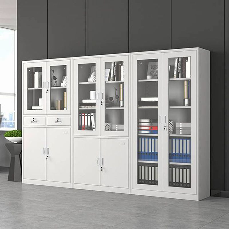 The sturdy metal cabinet with 2 sections, and double swinging doors in each section. There are shelves in each section for maximum utilization of space. And all doors are lockable for the security of important items.