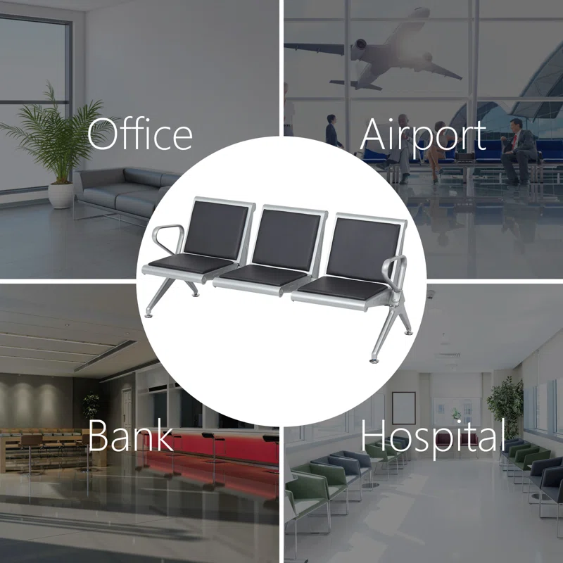 - Suitable for any commercial occasion. With black PU leather and silver metal frame, the reception guest chair is ideal for many occasions, such as airports, hospitals, bus stations, subway stations, train stations, meeting rooms, offices, banks, halls, lobbies, hospitals, exhibitions, barber salon, beauty salon, office waiting room.