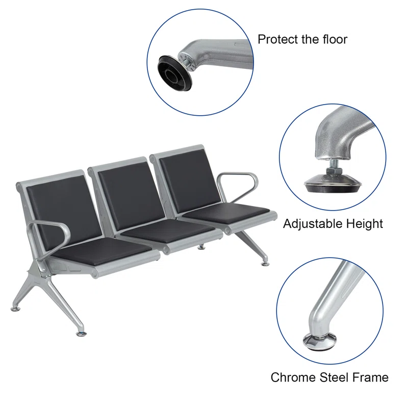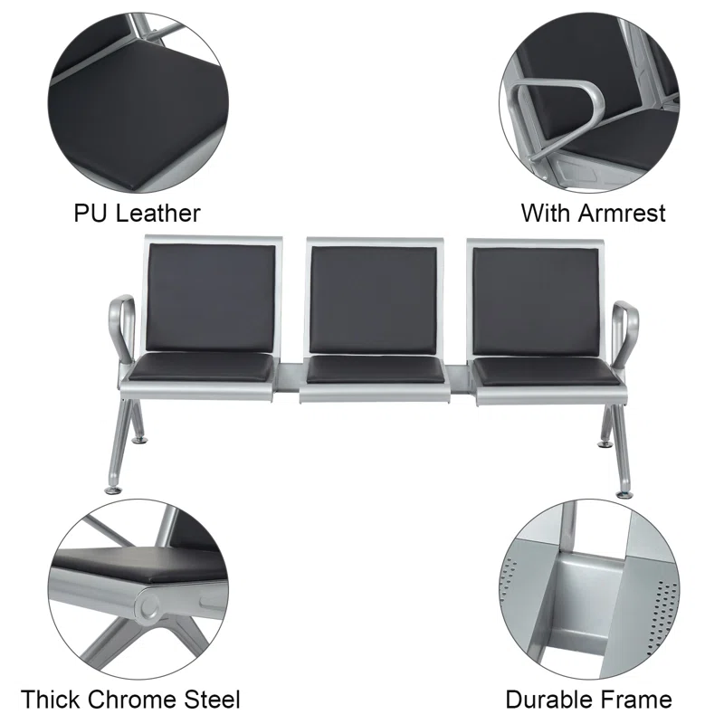 - Stable and durable. Constructed with metal, the waiting chair offers a comfortable seating experience. Prevent rust and prolong service life. The maximum weight capacity for each seat is 440 lbs.