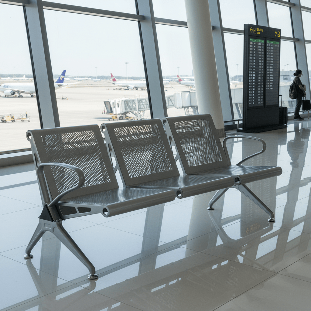 3-Link Stainless Steel Reception Bench – Durable, Sleek & High-Traffic Seating