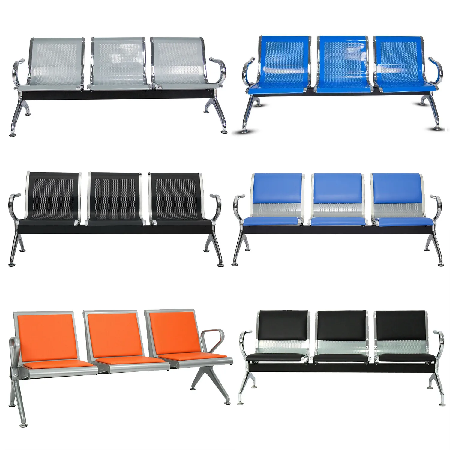 Airport three link metallic office bench
