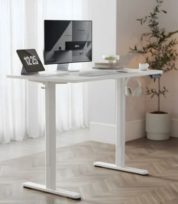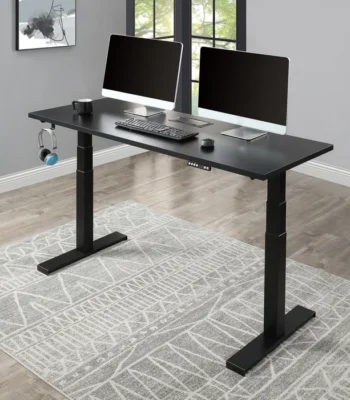 Featuring a durable steel frame and a spacious desktop, this height-adjustable office table comes with either a manual crank or electric lift system for effortless customization. Built-in cable management options keep your work area neat and organized, while its modern design complements any professional environment.