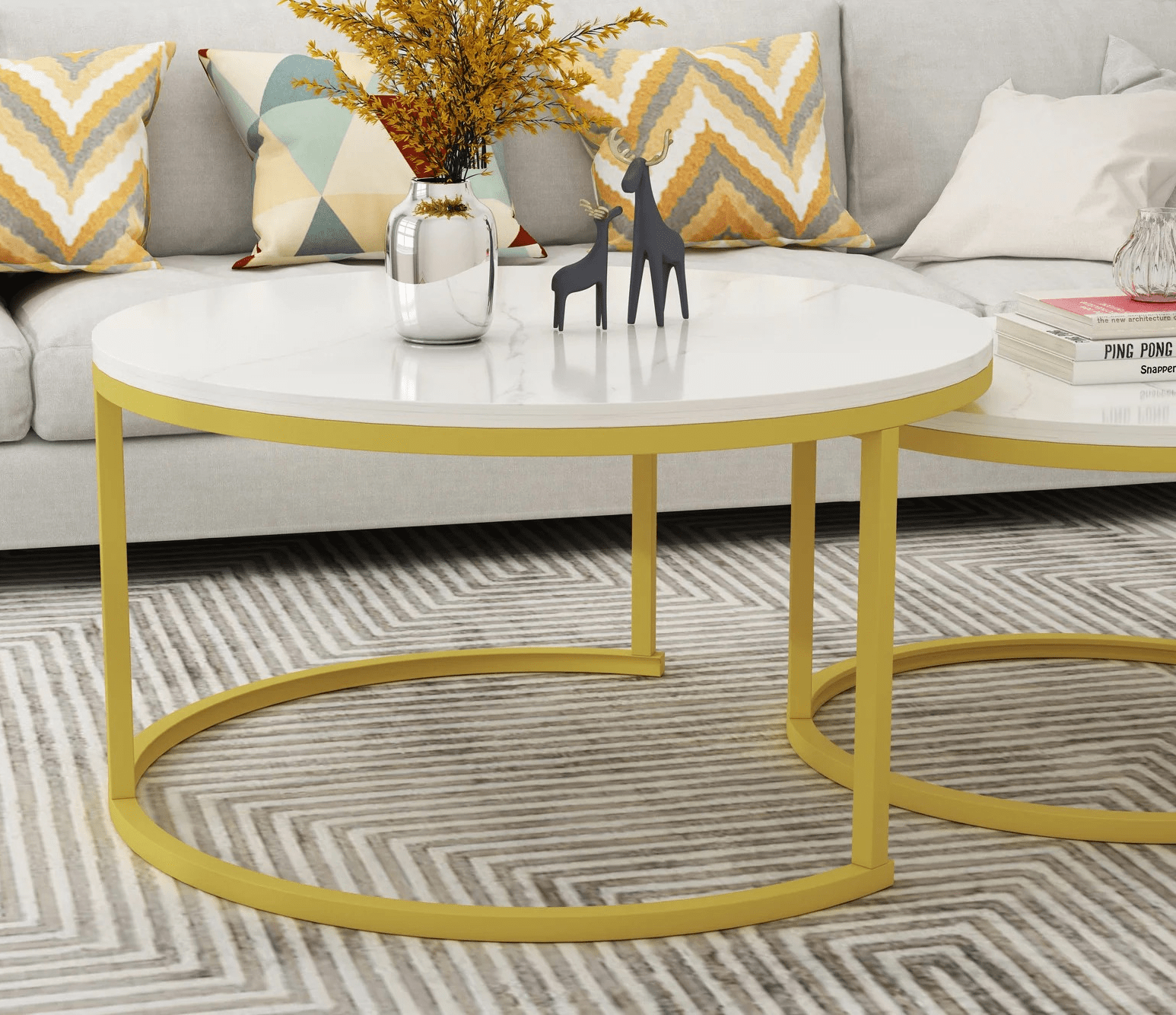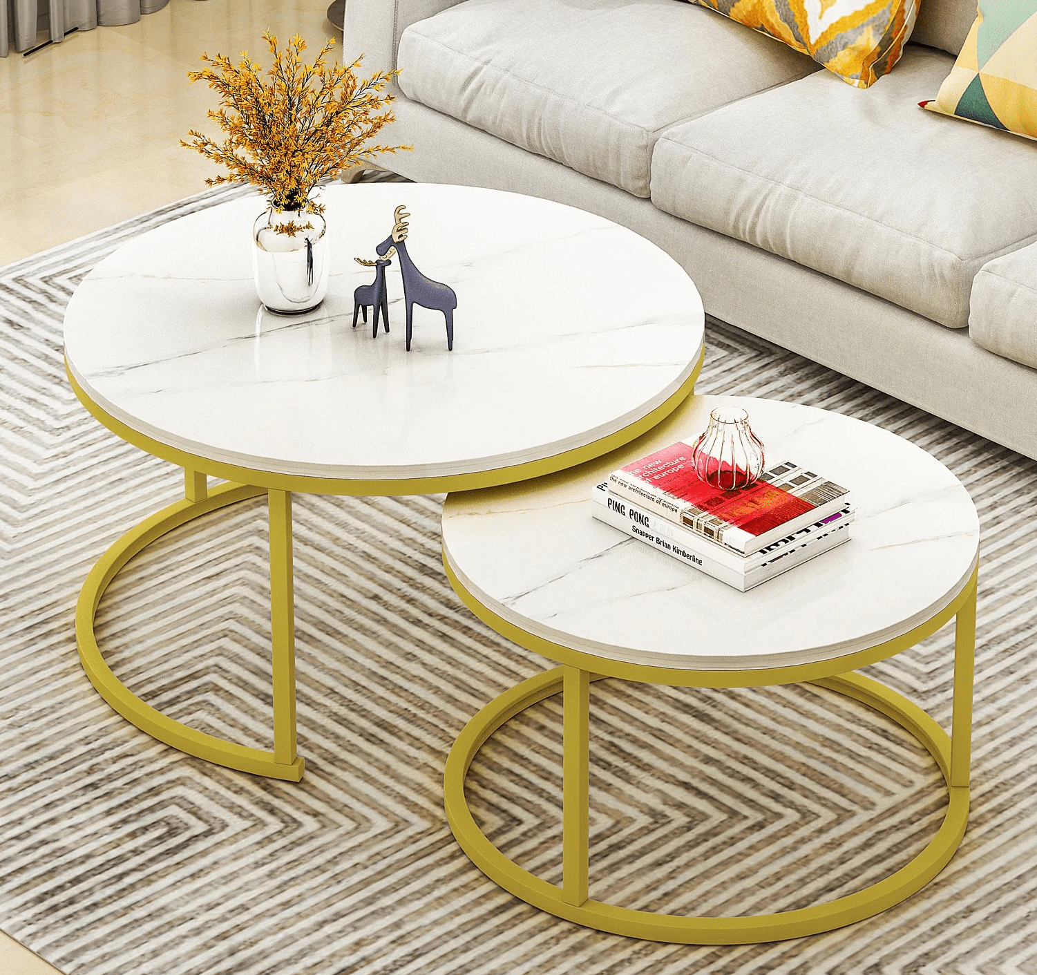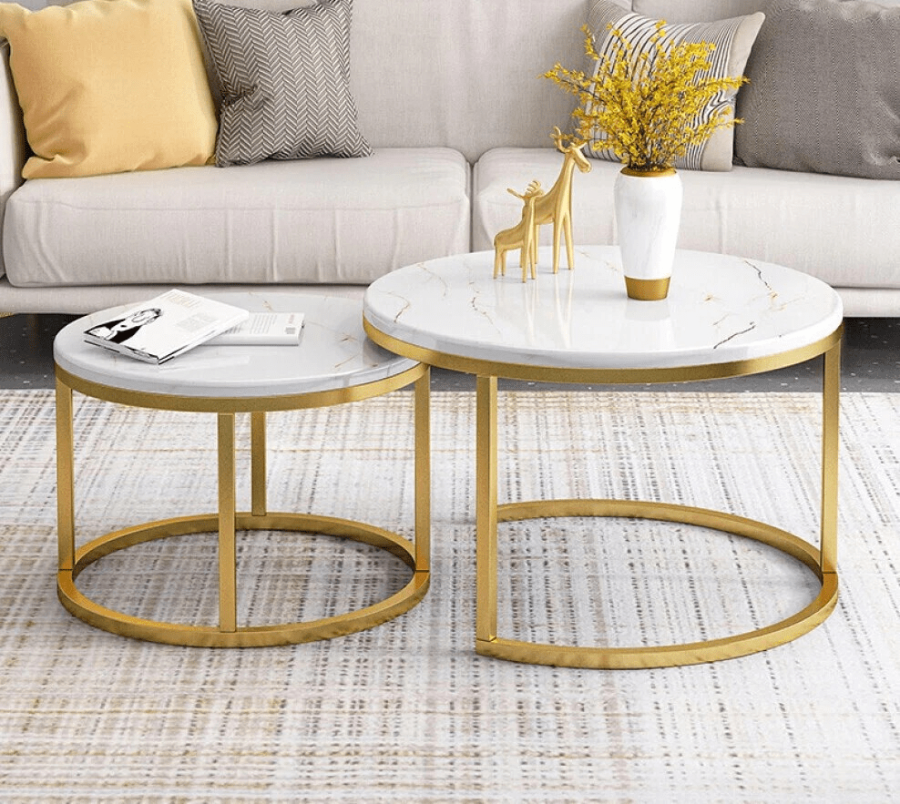 Black and Gold Nesting Coffee Table Set – Modern Living Room Elegance