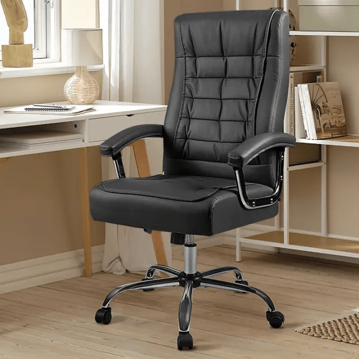 Upgrade your workspace with the Black Leather Office Chair With Fixed Arms. Designed for comfort and durability, this chair is ideal for offices, meeting rooms, and home workspaces. Its sleek black leather finish adds a professional and modern touch to any environment.