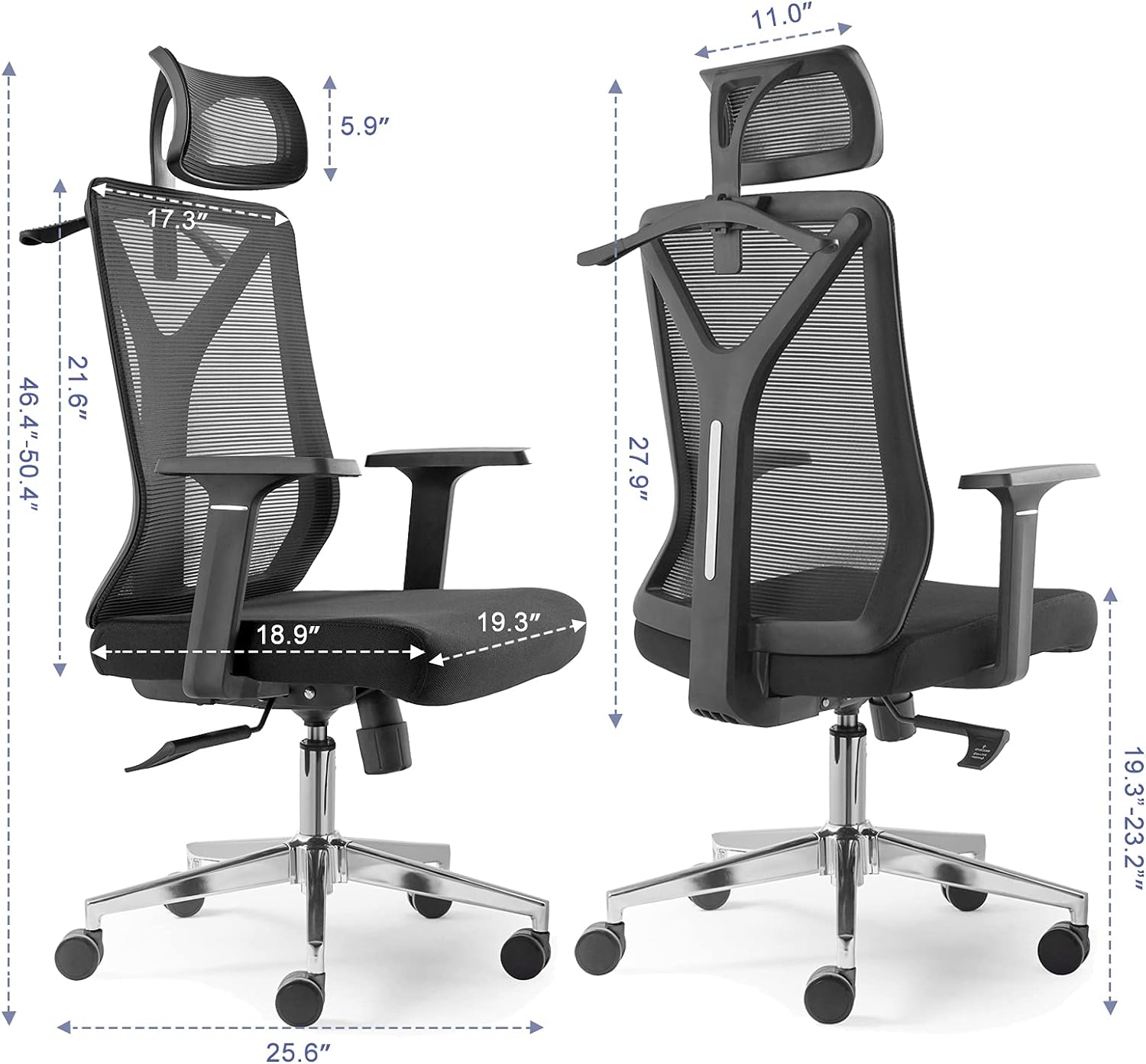 – Fabric seat with a mesh back.