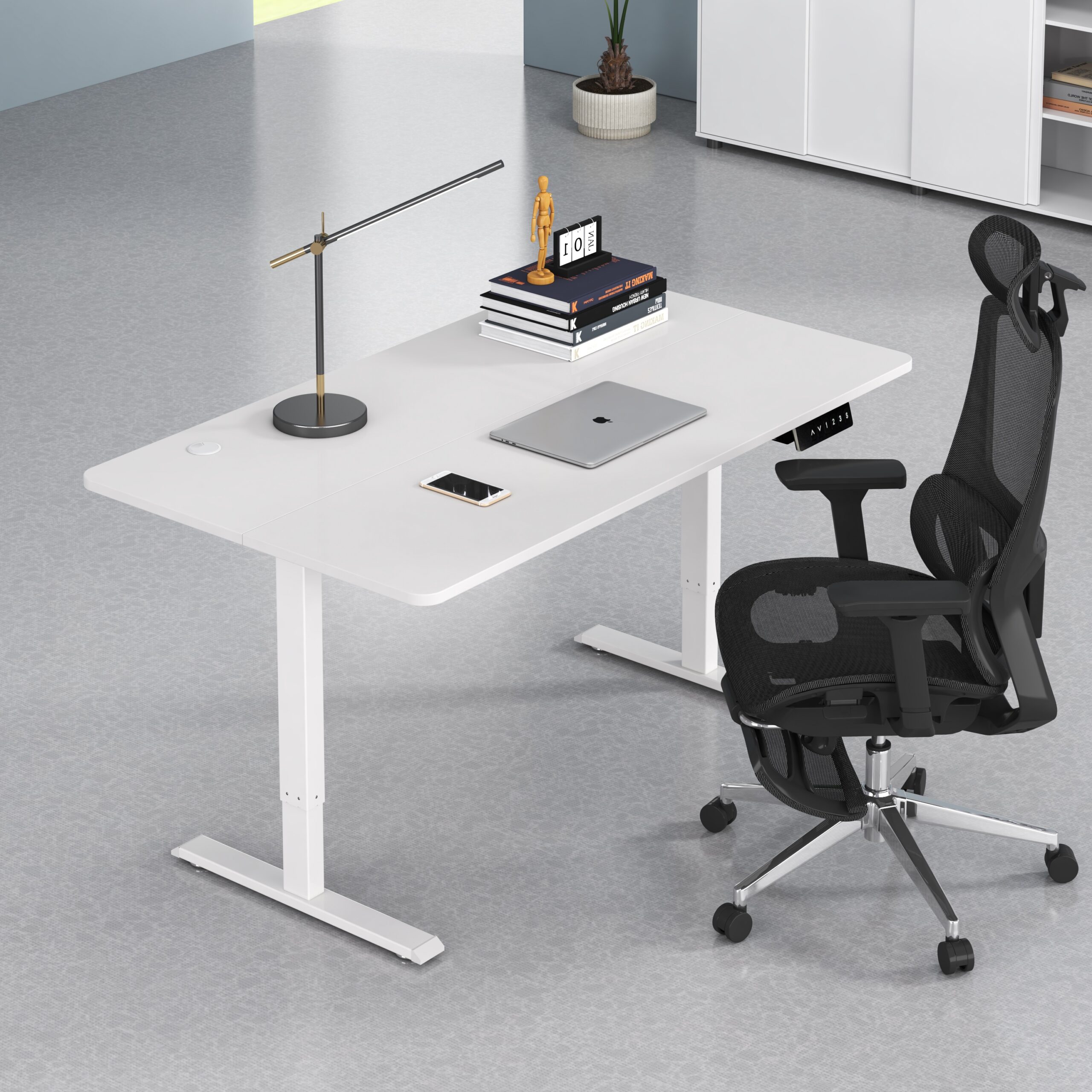 Electric Height Adjustment: Effortless, quiet motorized lift from sitting to standing heights.