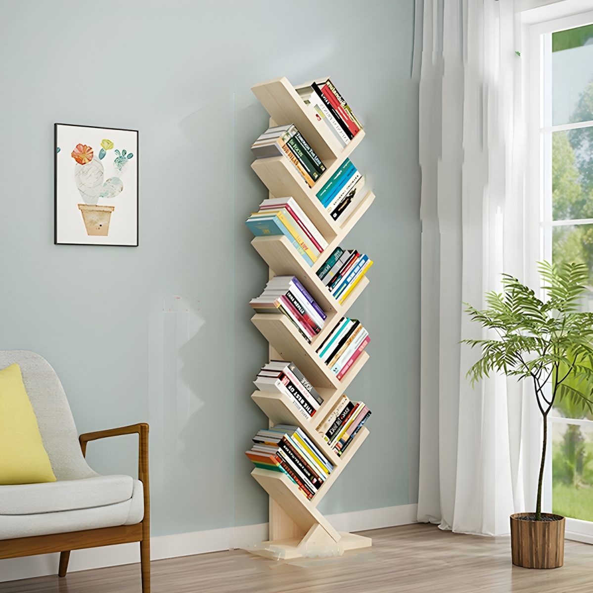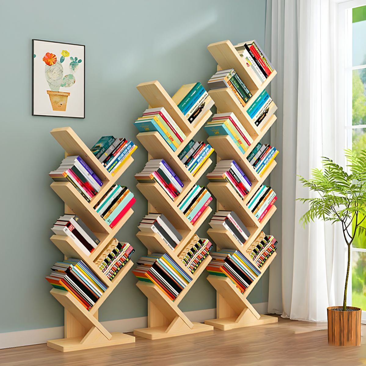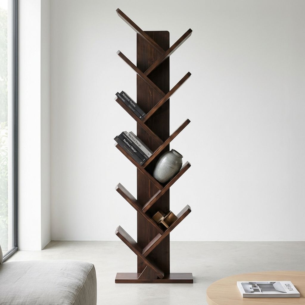 Wooden Tree-like Office Bookshelf – Creative, Stylish & Space-Saving Storage
